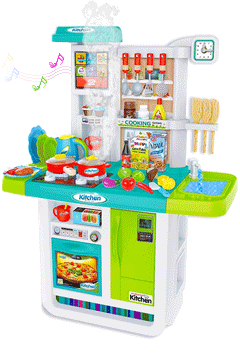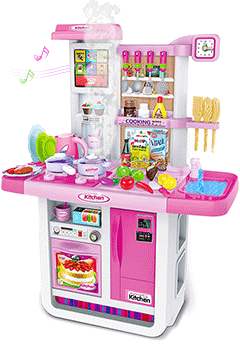 В комплекте есть множество аксессуаров - посудка и продукты.